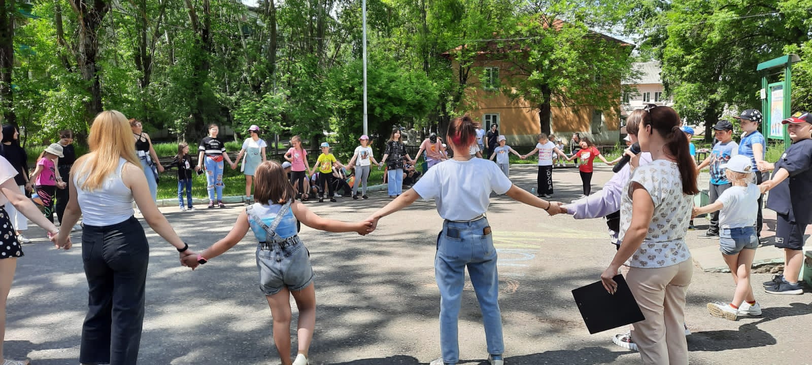 Маленькие жители п. Монтажный с удовольствием играли в подвижные игры, танцевали, дарили друг другу «обнимашки», отгадывали загадки, пели вместе с юными артистами МБУ ДО «ДМШ № 9» г. Пензы (директор Анна Резанова).