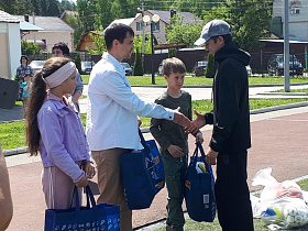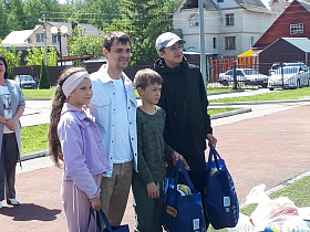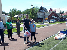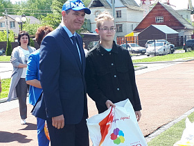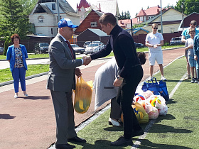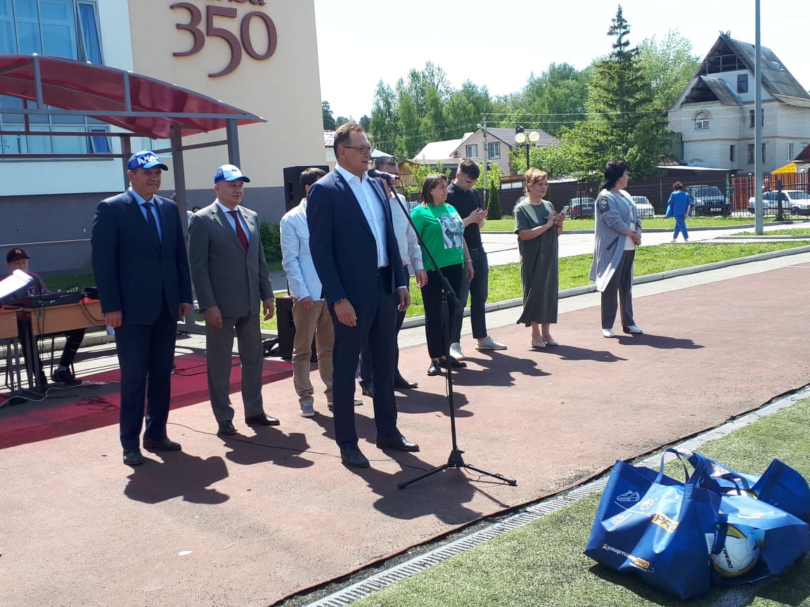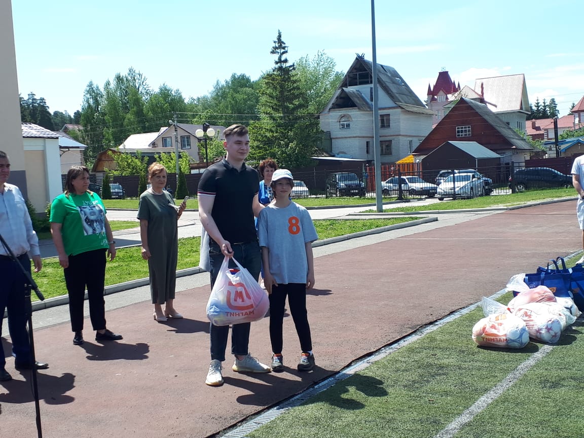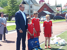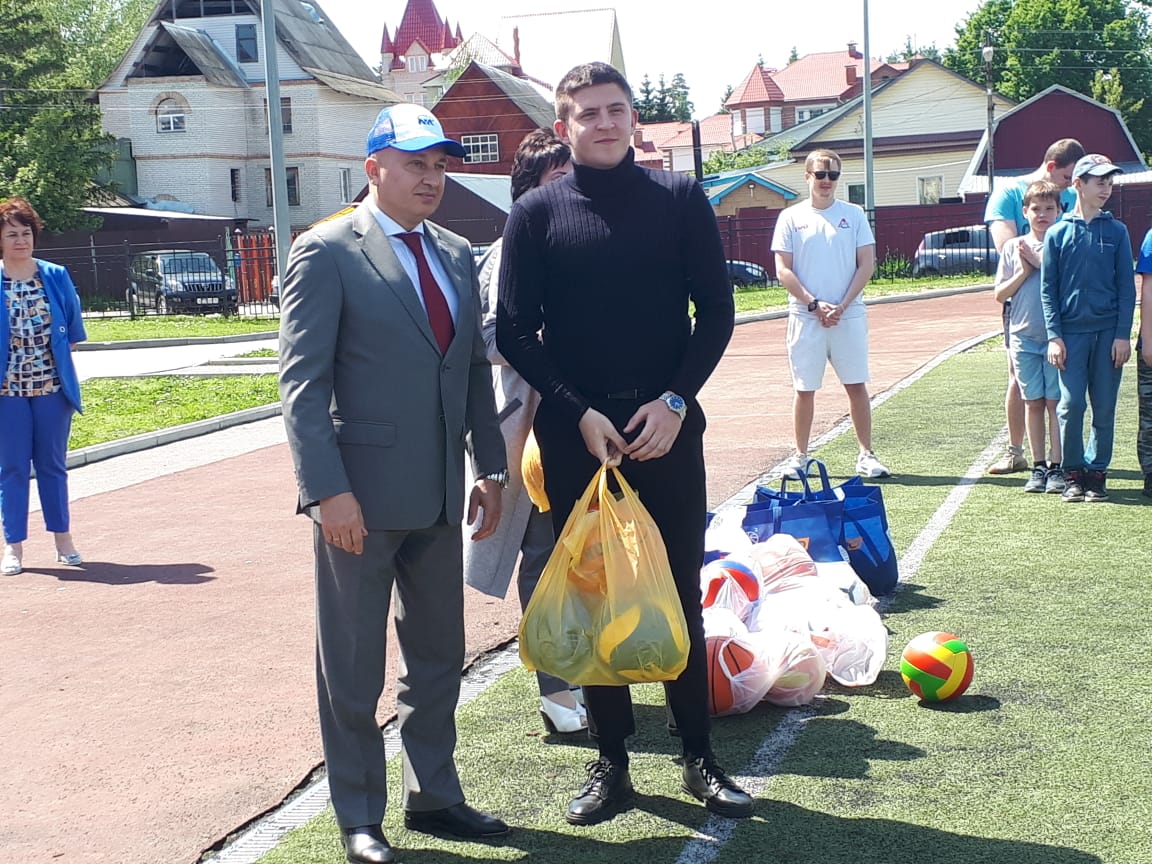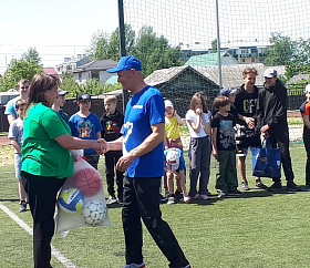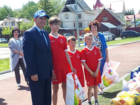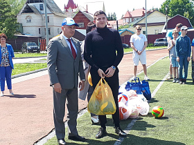 По доброй традиции почетные гости подарили спортивным командам общеобразовательных учреждений спортивный инвентарь – мячи.