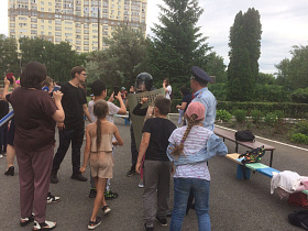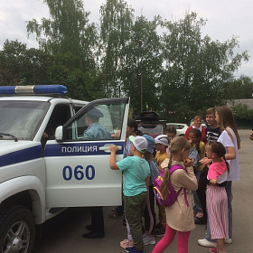 Сотрудники полиции продемонстрировали детям специальные средства, используемые сотрудниками полиции при исполнении служебных обязанностей, в том числе служебный автомобиль, оснащенный специальными сигналами.
