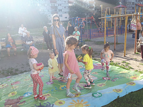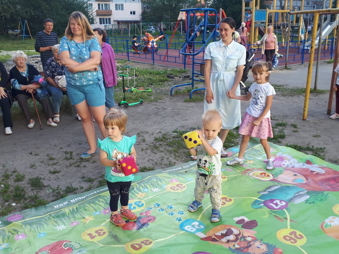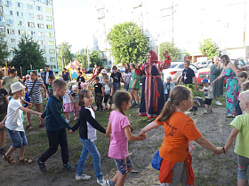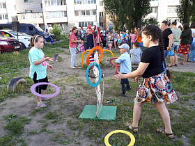 Жители подпевали артистам и танцевали под задорные русские песни. Малыши были очень рады игре-ходилке, Кольцебросу. Они с удовольствием посоревновались в ловкости, меткости, смекалке.