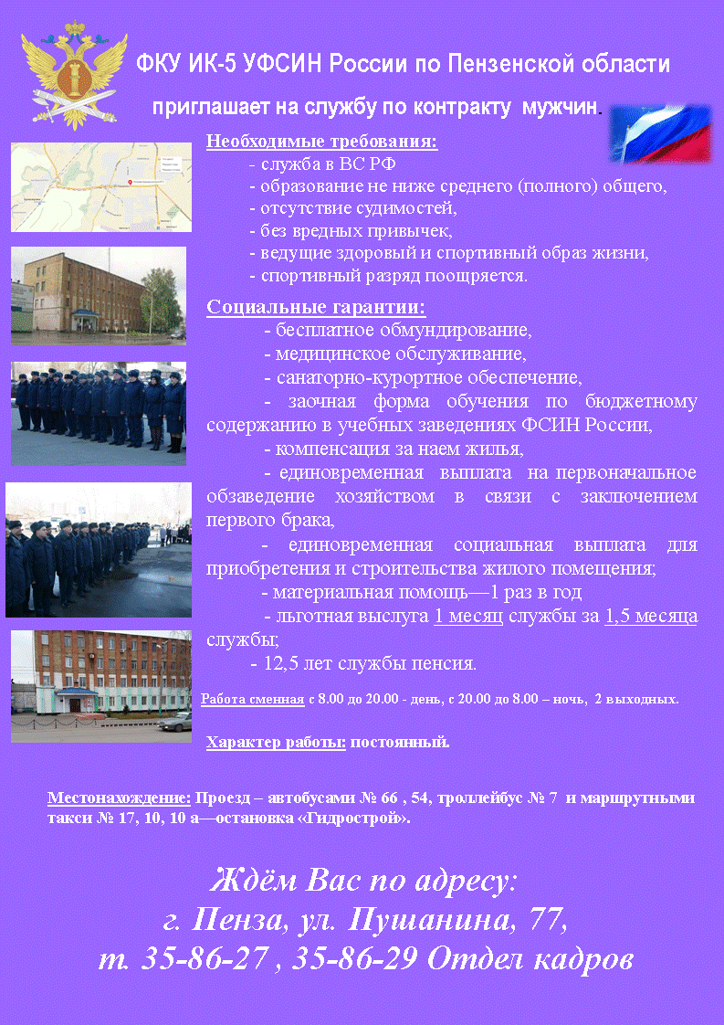 По всем вопросам оформления на службу в уголовно-исполнительную систему обращаться в отдел кадров и работы с личным составом