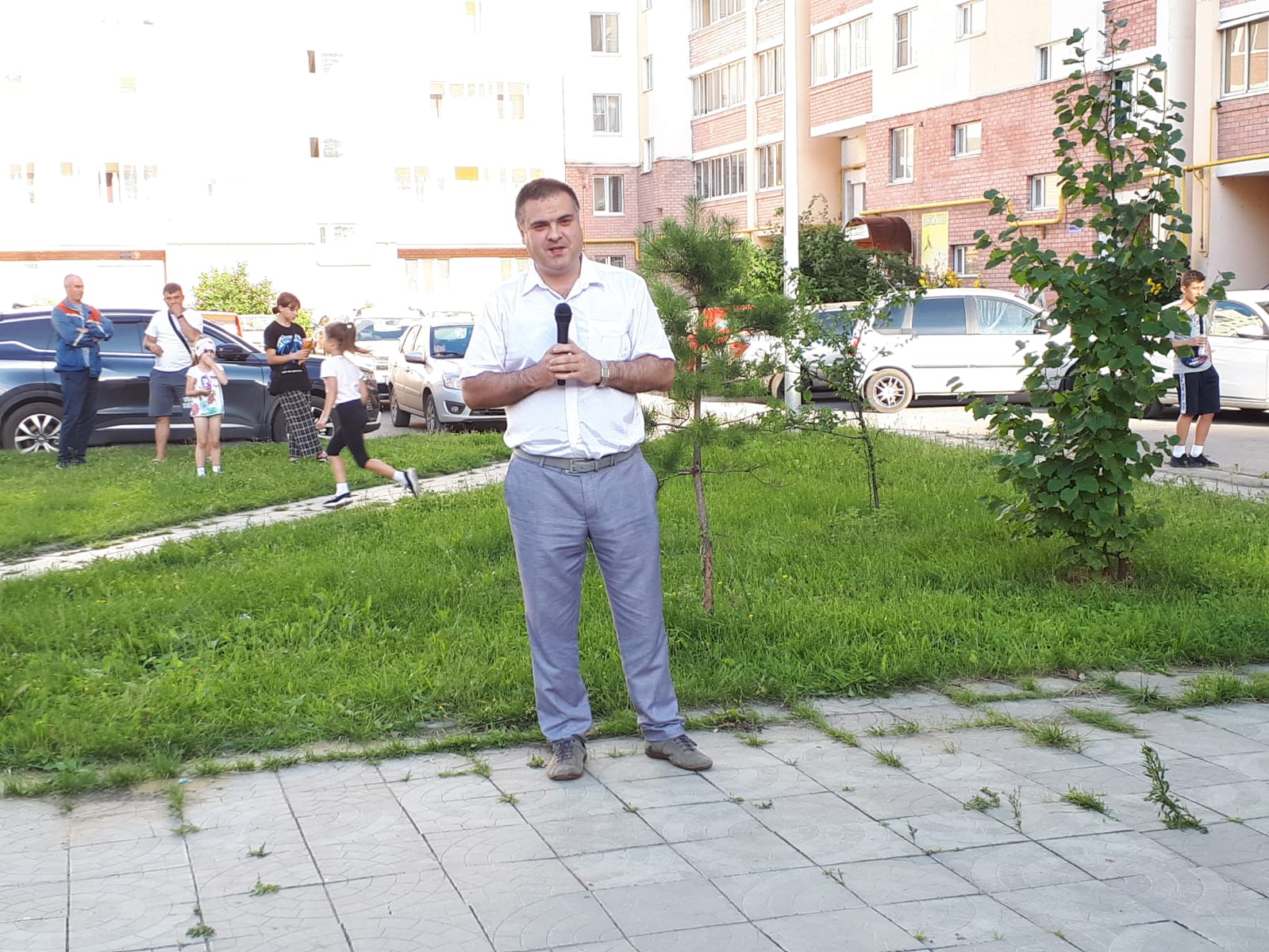 Глава администрации Железнодорожного района города Пензы Андрей Шулькин поздравил всех присутствующих с праздником, пожелал хорошего летнего настроения, пообщался с представителями старшего поколения по вопросам благоустройства.