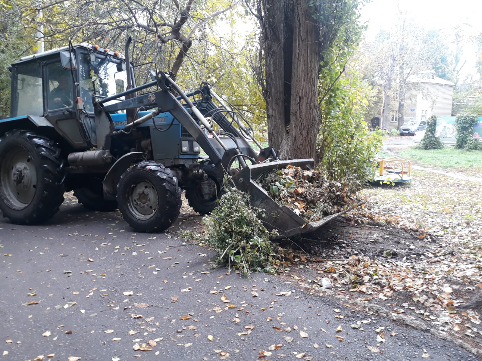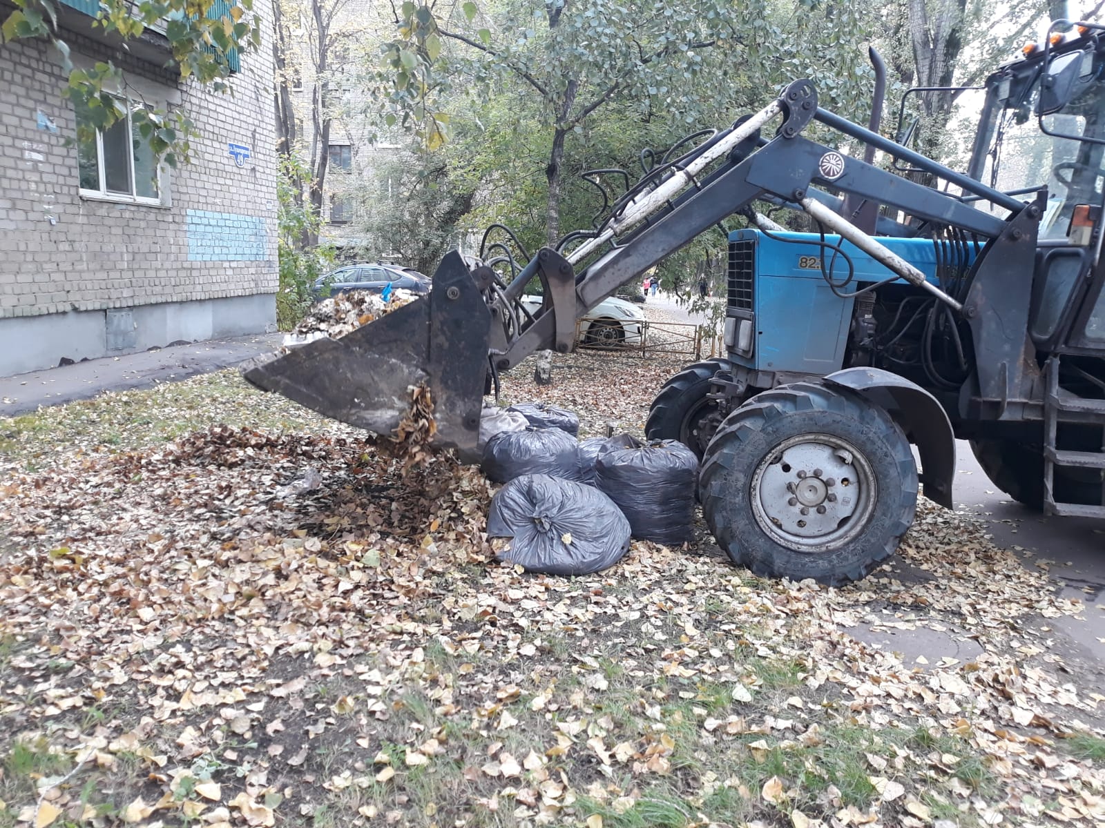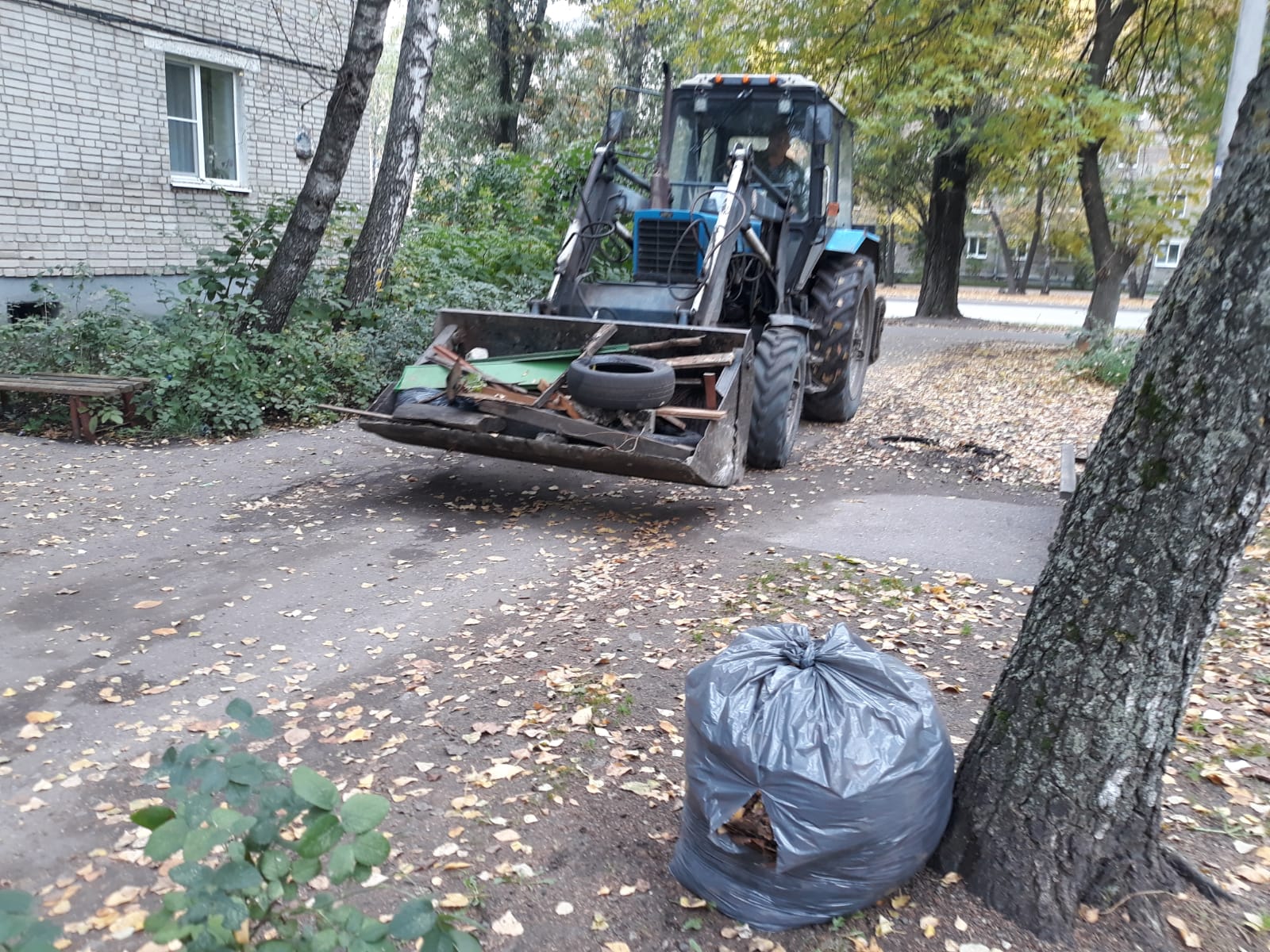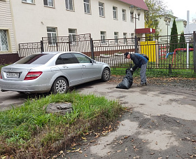 Трудовые коллективы предприятий и организаций собирали листву на собственных и прилегающих территориях.