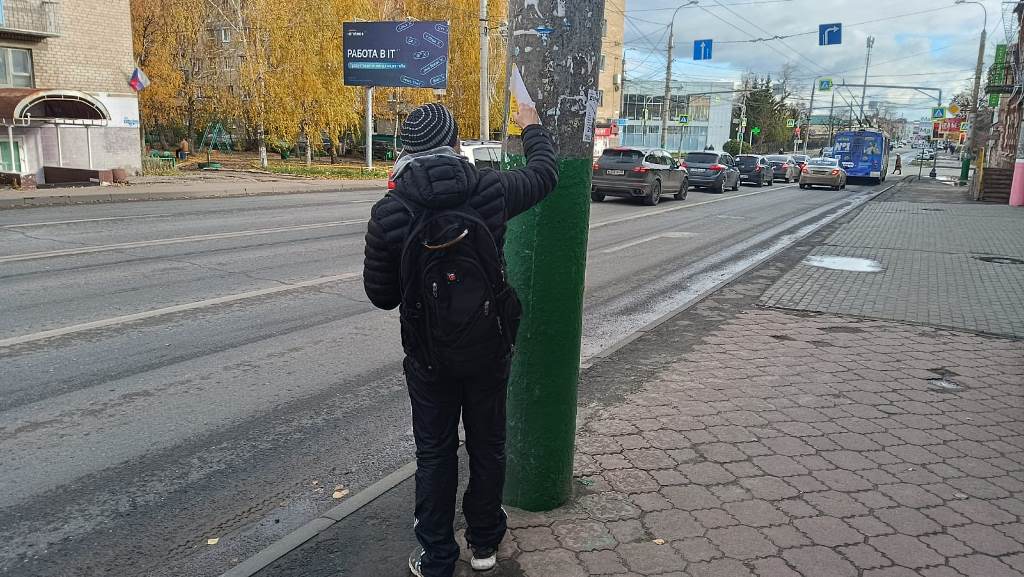 Проведена очистка световых опор, ограждений и фасадов зданий от несанкционированной рекламной информации по центральным улицам района.
