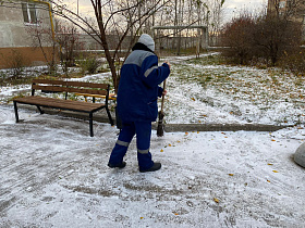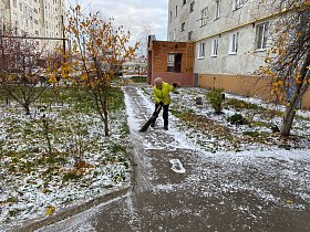 15 ноября 2022 года в Железнодорожном районе с раннего утра на уборку придомовых территорий многоквартирных домов вышли работники управляющих компаний, ТСЖ, наиболее опасные участки пешеходных зон обработаны противогололедными средствами.