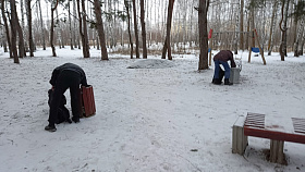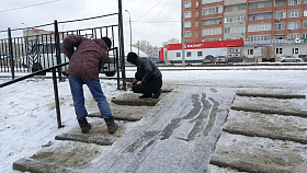 В сквере «Семейный» по улице Антонова очищен от снега и обработан противогололедным средством лестничный марш, собран бытовой мусор на территории сквера.