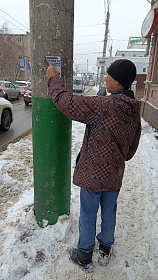 В центральной части города продолжены работы по очистке опор наружного освещения от визуальной нерекламной информации.
