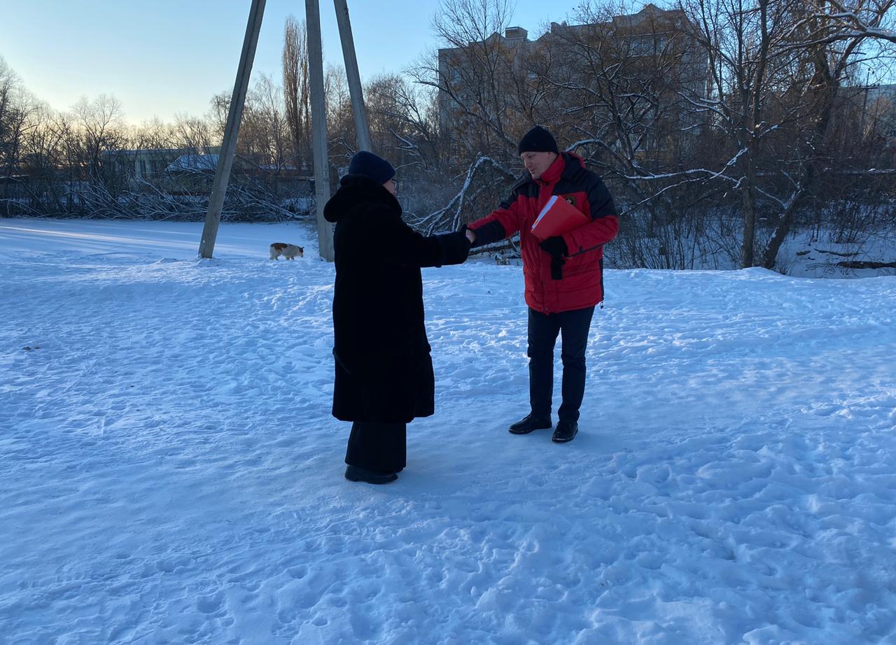 Согласно требований Постановления администрации города Пензы № 1798 от 16.11.2022 «О мерах по обеспечению безопасности населения на водных объектах города Пензы в осенне-зимне-весенний период 2022- 2023 годов» 10 января 2023 года на территории Железнодорожного района г. Пензы проведен межведомственный профилактический рейд по безопасному нахождению граждан на водоемах, расположенных рядом с пляжем «Ангарка» в районе ГПЗ (напротив МКД «Сурская ривьера»), берег реки старая Сура напротив частного сектора ул. Гребная, берег реки старой Суры (старый пляж «Маяк»), ул. 2-я Кошевого, старое русло реки Сура в районе МБОУ СОШ № 43 г. Пензы (ул. Парковая, 2).