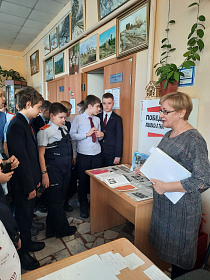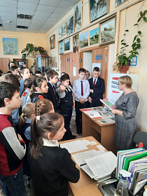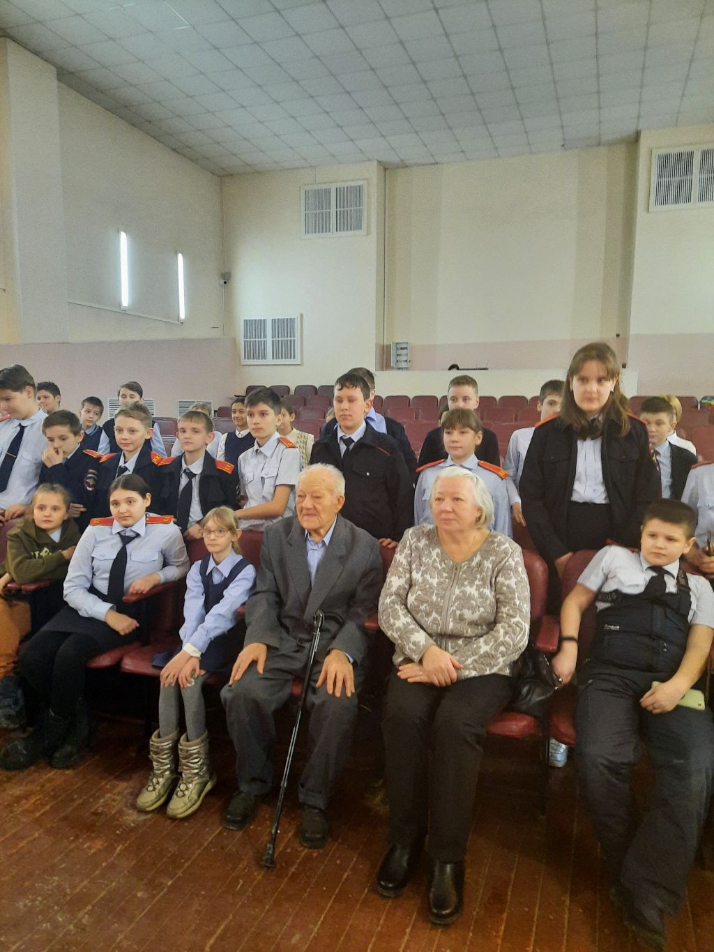 На встречу был приглашён ветеран, труженик тыла, Котов Михаил Михайлович, который рассказал детям о своём нелёгком трудовом и жизненном пути. После завершения мероприятия дети были приглашены в фойе на книжную выставку, которую подготовила городская библиотека №11 (заведующая Надежда Скалкина).