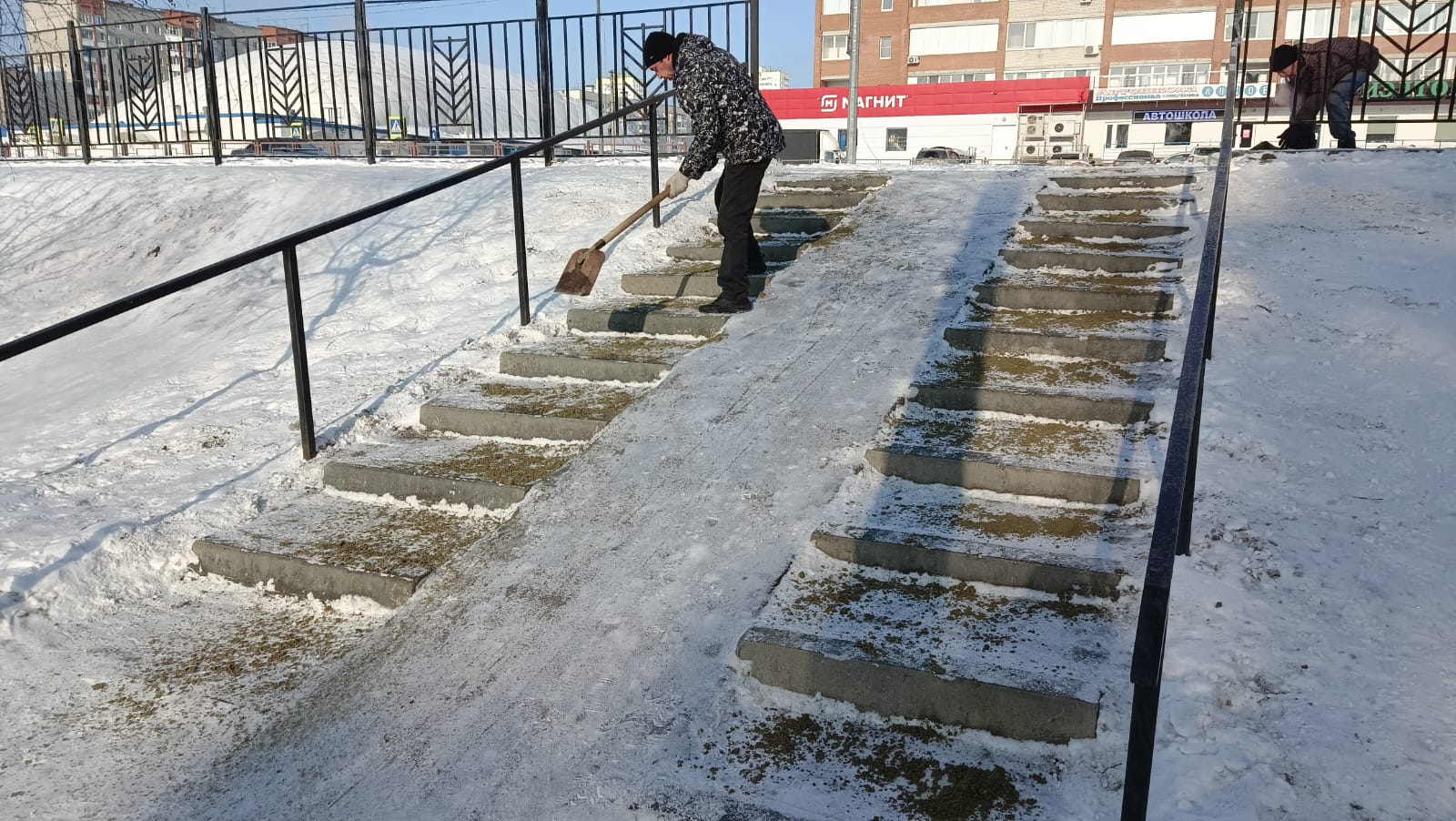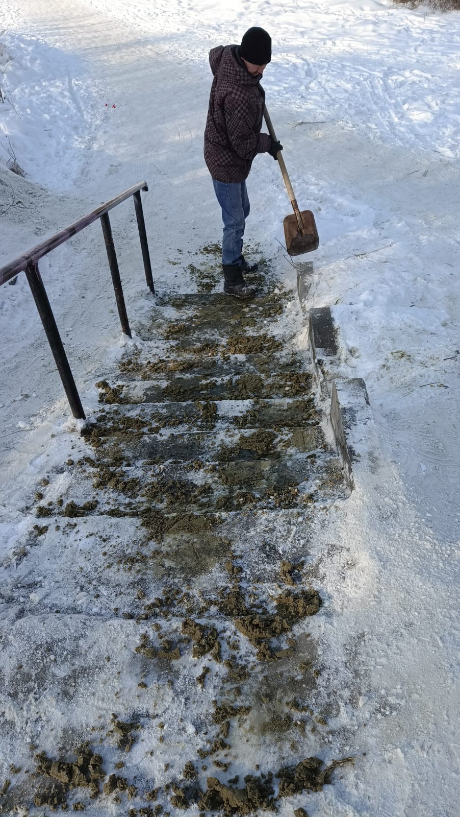 На улицах Антонова, Ангарская выполнены очередные работы по очистке от снега и наледи лестничных маршей, ступени обработаны противогололедными средствами.