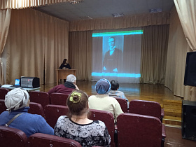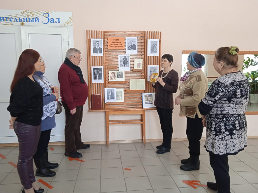 Руководитель клубного формирования ЗОЖ "Совершенство" рассказала о жизни и творчестве великого певца. Рассказ сопровождался показом видеоряда. Участники мероприятия прослушали арии "Болеро", "Блоха" и знаменитую народную песню "Вдоль по Питерской" в исполнении Федора Шаляпина.