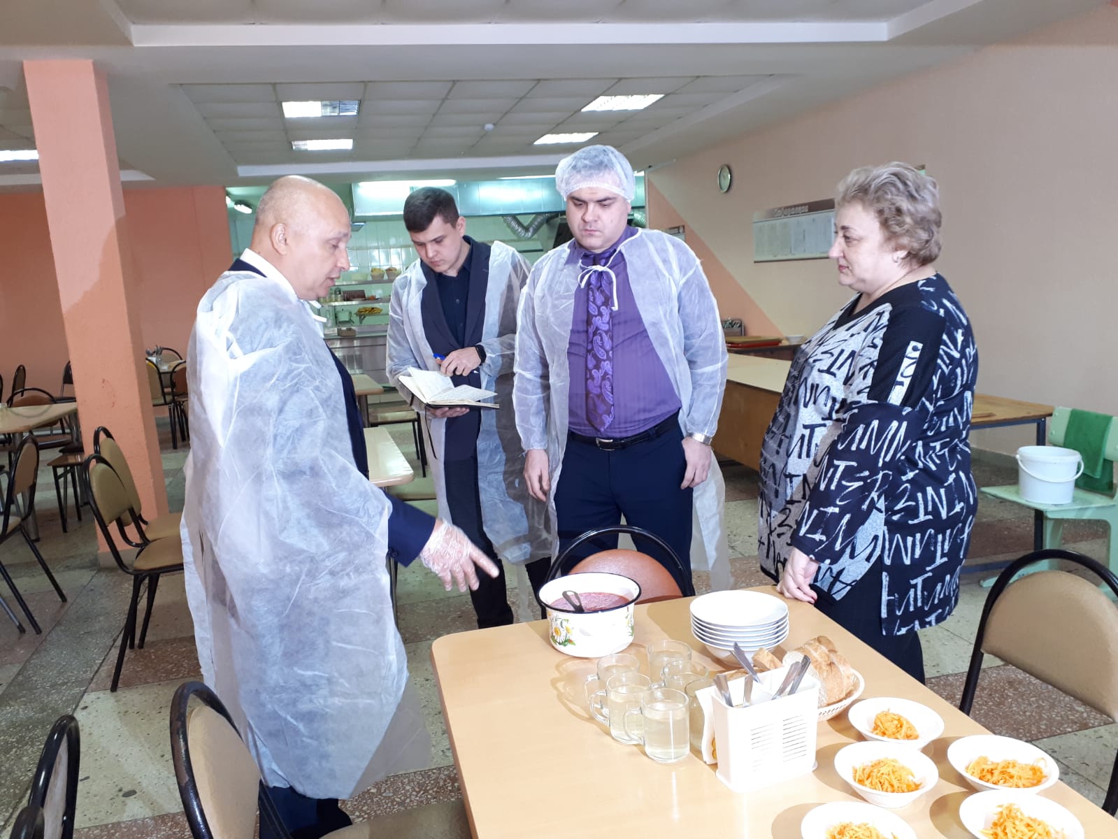 Проверены соответствие реализуемых блюд утверждённому меню, соблюдение графика приёма пищи, санитарно-техническое состояние обеденного зала, объем отходов, процесс приема пищи учащимися.