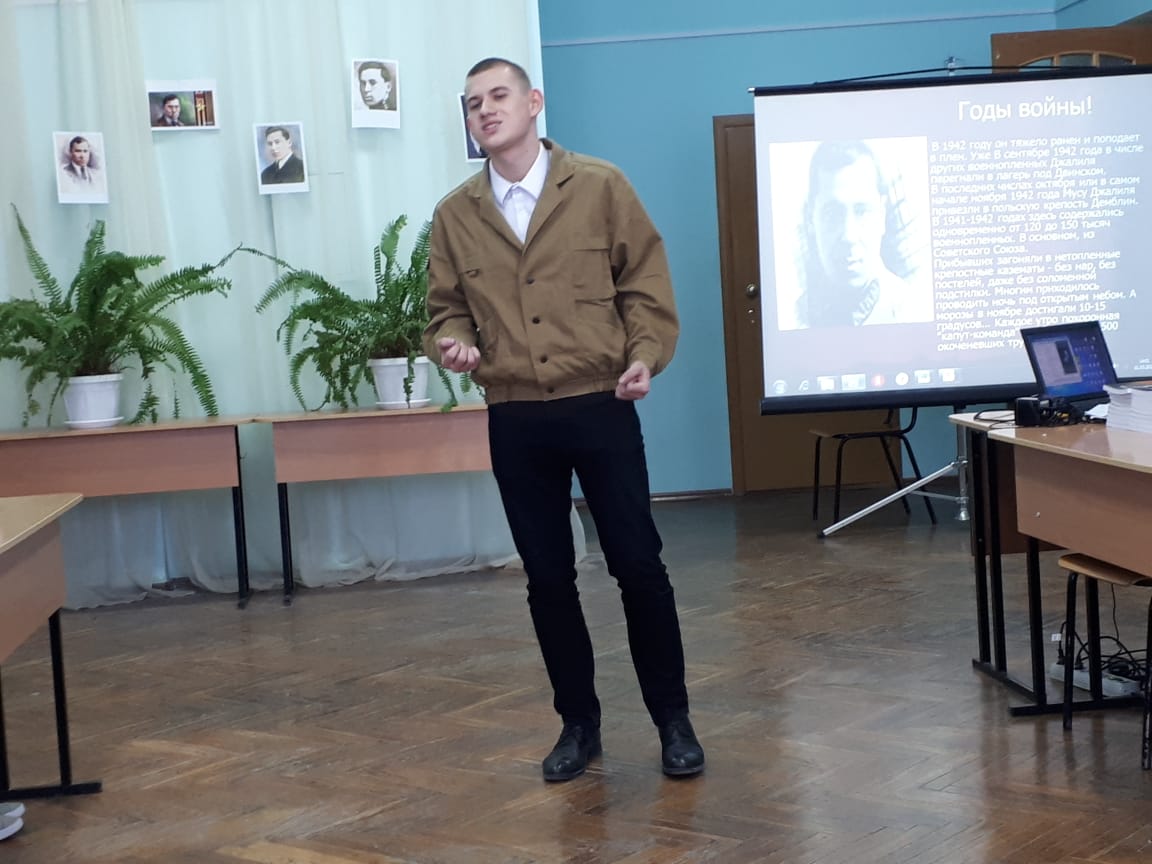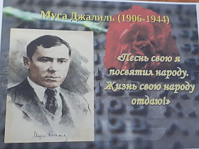 Необыкновенно талантливые, творческие ребята через трогательные лирические песни, стихи, повествование истории жизни от первого лица в форме театральных постановок, сценок рассказали о трагической судьбе известного поэта, героя Мусы Джалиля.