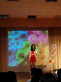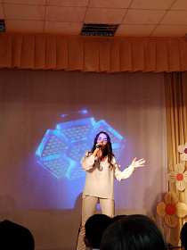Прекрасную половину с праздником поздравили солисты клуба любителей музыки "Автор" (руководитель Шафкат Чатаев) Юрий Хошобин и Марина Якушкина, солистка ансамбля народной песни "Рощица" (руководитель Ольга Ростовцева) Олеся Кислякова, дуэт "Мы" - Вячеслав Шпильков и Татьяна Рудакова, приглашенная гостья Любовь Наумкина с замечательным пародийным номером и участники студии эстрадного танца "Колибри" (руководитель Гульнара Абубекерова).
