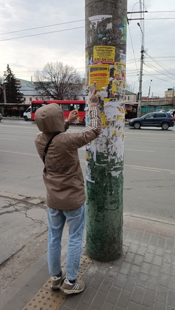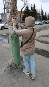 Продолжена работа по очистке опор наружного освещения от визуальной нерекламной информации в центральной части города.