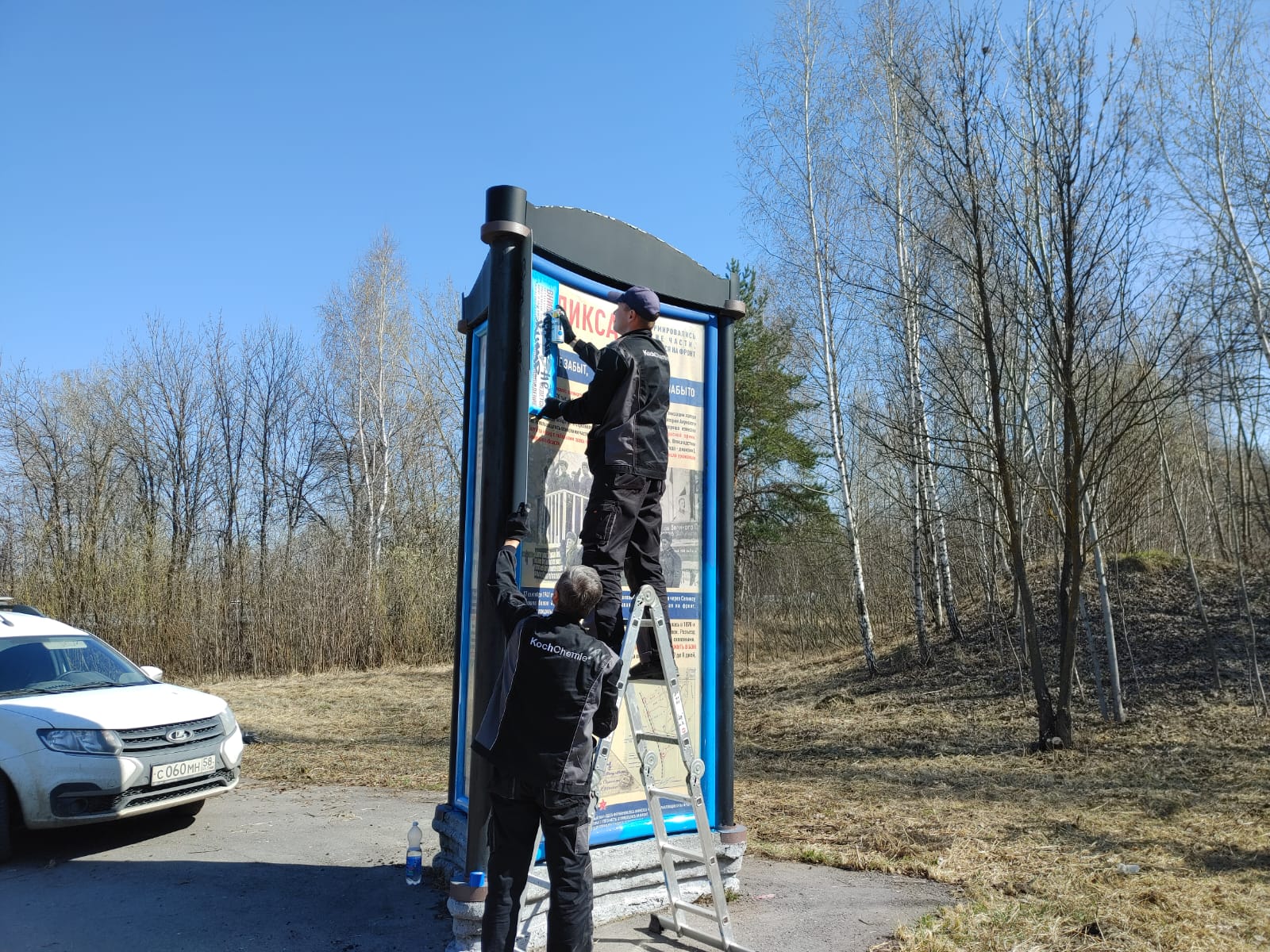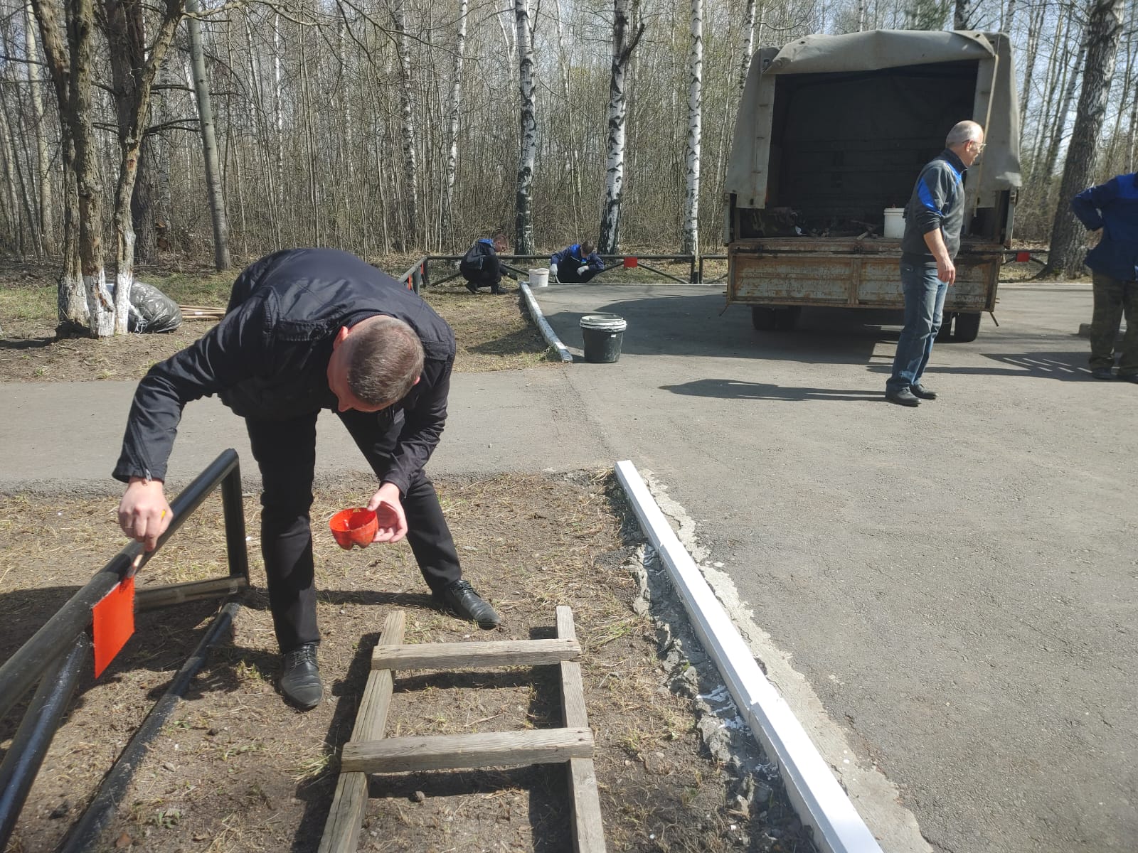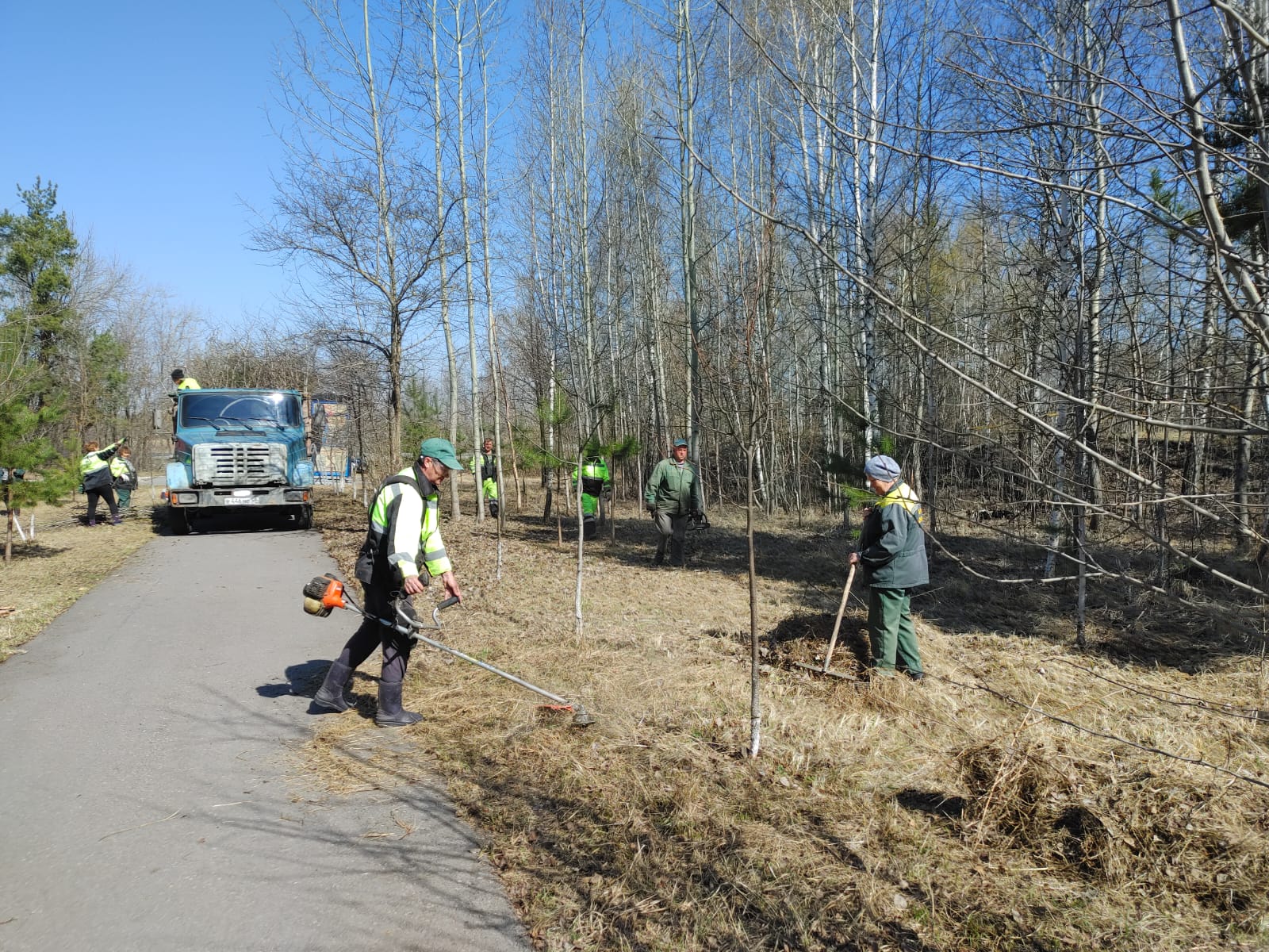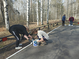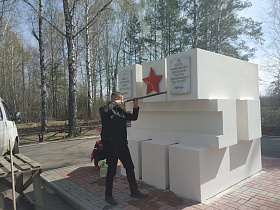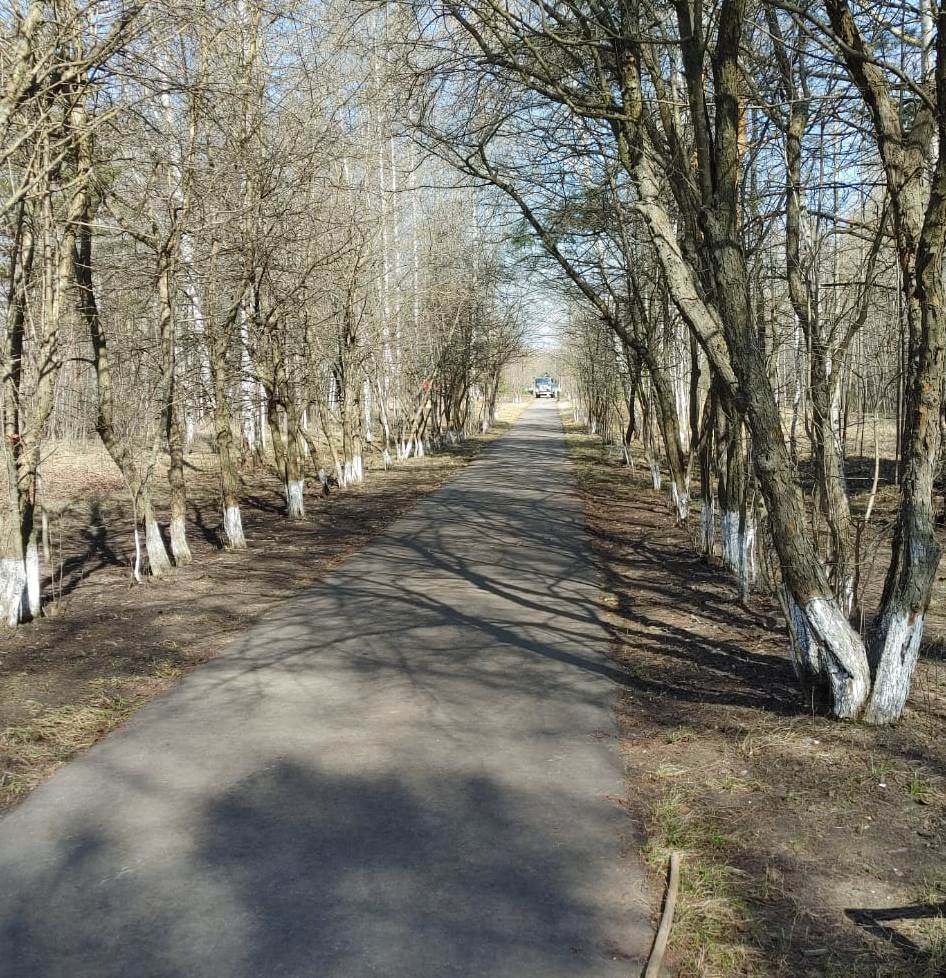 Сегодня на прилегающей территории мемориала выполнены работы по сбору и вывозу мусора, покосу травы, уборке сухостоя, опиловке деревьев, обрезке кустарников, побелены стволы деревьев и бордюрный камень, покрашено ограждение по периметру памятного места, обновлен облик монумента, подготовлены места для высадки молодых саженцев деревьев.
