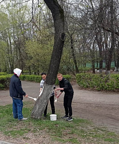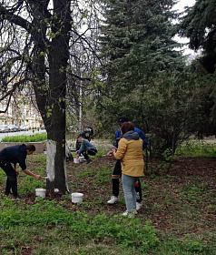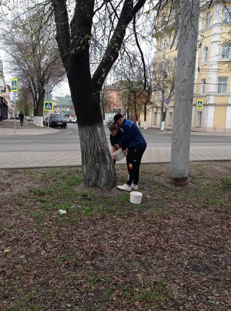 Студенты Филиала Самарского государственного университета путей сообщения в г. Пензе побелили стволы деревьев вдоль улицы Октябрьская.