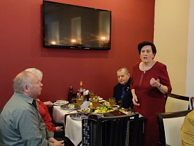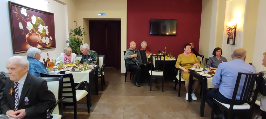 В теплой, уютной атмосфере, созданной коллективом кафе «ЧеРута» (Цой Наталья Робертовна, Гурэу Инна Равиковна) ветераны вспомнили истории создания песен военных лет и под аккомпанемент баяна (Колесников Виктор Петрович, МБУ ДО ДМШ № 9 г. Пензы) с большим воодушевлением исполнили: «Катюша»; «Смуглянка»; «Синий платочек»; «Темная ночь»; «В землянке» и другие песни.Низкий поклон вам, победители, и большое спасибо за жизнь, за мир, за свободу! С Днем Победы!